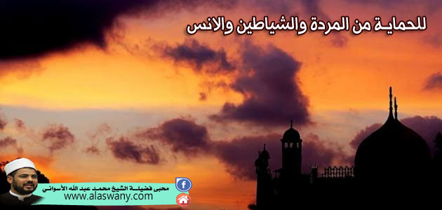 قوله تعالى ” وإذا قرأت القرآن ” إلى قوله تعالى ” نفورا ” الإسراء , هذه الآية تطرد المردة والشياطين من الجن والإنس وأن تلاها الإنسان على الخائف أمن , أو المذعور الذى يتخيل له الخيالات الفاسدة زال عنه ذلك وإن كتبت في خرقة صوف زرقاء وعلقت على عضد من عنده تابع من الجن يتبعه زال عنده ما يجده([1]) .
