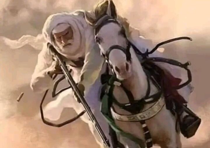 (عمر المختار) الملقب بشيخ الشهداء أو أسد الصحراء شيخ الطريقة السنوسية في برقة في ليبيا
