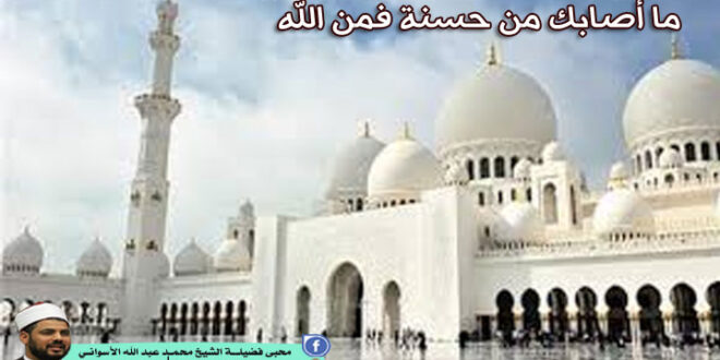 ما أصابك من حسنة فمن الله : * سؤال عن معنى قوله تعالى : ” مَّا أَصَابَكَ مِنْ حَسَنَةٍ فَمِنَ اللّهِ وَمَا أَصَابَكَ مِن سَيِّئَةٍ فَمِن نَّفْسِكَ “. و ملخص الجواب بما يحتمله الإجمال : أن الخير كله من الله خلقا ، و كسبه مأمور به ، و أن الشر …