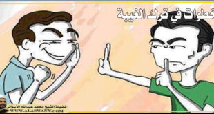 ( خطوات في ترك الغيبة ) 1- تكرار الدعاء في السجود وبين الأذان والإقامه “اللهم اجعل كتابي في عليين واحفظ لساني عن العالمين”. 2- في كل مره تغتاب فيها أحدا” لابد وأن تجبر نفسك تستغفر عنه 100 مره ؛ منها حافظت على حسناتك؛ وعودت نفسك على حفظ لسانك. 4- اكثر …
